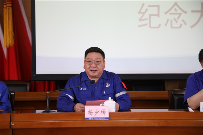 公司領導陳?健⒘菏η濉⒀釕儐 ⑻錁?、姚勝華、李應昌、雙華軍、王國海、唐瀅、谷克超,總部領導、各單位領導、先模人物代表、黨員代表、職工代表、青年代表參加會議。會議由黨委副書記、工會主席楊少稀主持,青島地區視頻參會。