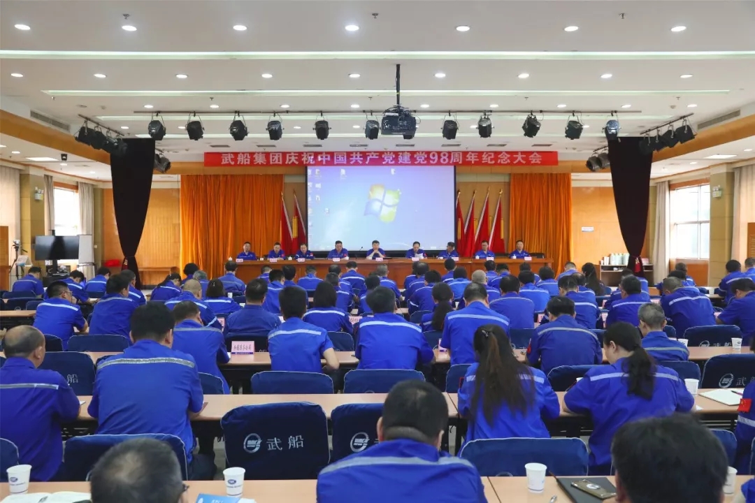 7月1日,武船集團黨委在總部綜合大樓三樓學術報告廳組織召開慶祝中國共產黨建黨98周年紀念大會,公司黨委書記、董事長陳?劍?黨委副書記、總經理梁師清及公司領導王渭齡、田軍、姚勝華、李應昌、雙華軍、唐瀅和各單位中層領導以及先進集體代表、個人共200余人參加活動,黨委副書記楊少稀主持會議。