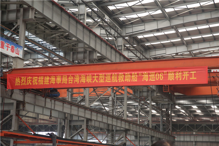 2019年5月23日上午,福建海事局臺灣海峽大型巡航救助船“海巡06”開工儀式在武船集團雙柳基地六連跨內業車間舉行。