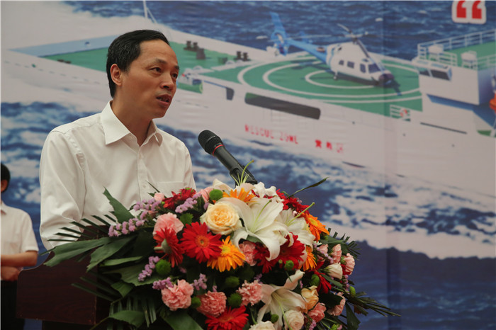 徐增福致辭表示,臺灣海峽大型巡航救助船承載著保障國家重大發展戰略、服務臺灣海峽兩岸交流交往、提升海事履職能力的重要使命,是福建海事局設施建造中的重大標志性工程。我們堅信并希望武船集團能夠克服重重困難,在多方的大力支持及配合下,保質保量按期交付一艘“精品船”、“明星船”,為進一步增強我國海事監管和應急反應能力,承擔起臺灣海峽海上交通安全保障和海上救援的重任助力!