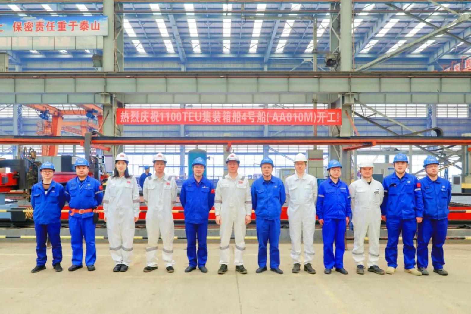4月7日上午11時(shí)18分,武昌造船為CA Shipping建造的1100TEU集裝箱船4號(hào)船在雙柳廠區(qū)順利開工。該船順利開工標(biāo)志該批一型四艘1100TEU集裝箱船系列船項(xiàng)目全部從前期策劃階段正式轉(zhuǎn)入船舶建造階段。船東代表、哥倫比亞船舶管理公司、NK船級(jí)社相關(guān)領(lǐng)導(dǎo)以及公司相關(guān)部門代表、產(chǎn)品三總師參加開工儀式。