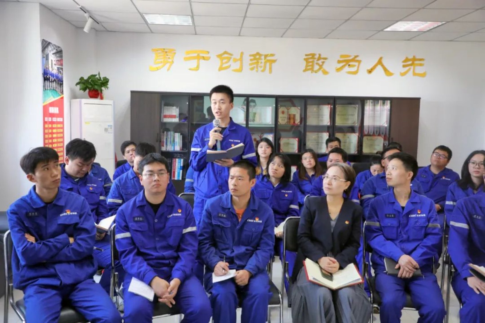 為深入貫徹落實共青團中央關于面向廣大團員和青年開展學習貫徹習近平新時代中國特色社會主義思想主題教育的工作部署,10月20日,在共青團武漢市委的指導下,由中國船舶集團武昌造船團委舉辦青春奮斗時、船承新未來青春走讀班,在武昌造船機電公司陶興泉勞模創新工作室開講。共青團武漢市委宣傳部副部長鐘利到場指導,武漢理工大學綠色智能江海直達船舶與郵輪游艇研究中心裴志勇教授作專題宣講,來自公司各單位20余名團員青年骨干參加活動。