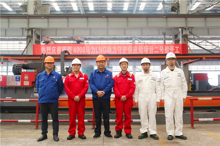 2019年10月31日,由武船集團船舶公司為中海油服建造的兩型4000馬力LNG動力守護供應(yīng)船項目2號船在武船雙柳基地順利開工,船東、船檢以及船舶公司相關(guān)領(lǐng)導(dǎo)參加開工活動。這也標(biāo)志著該項目由前期生產(chǎn)技術(shù)準(zhǔn)備階段進入生產(chǎn)建造階段。