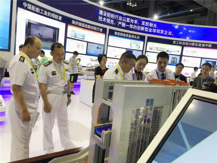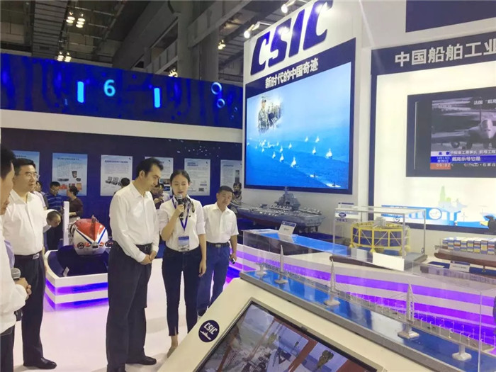 ▲2018重慶高交會(huì)上海軍潛艇學(xué)院院長(zhǎng)王宇,參觀武船三峽升船機(jī)