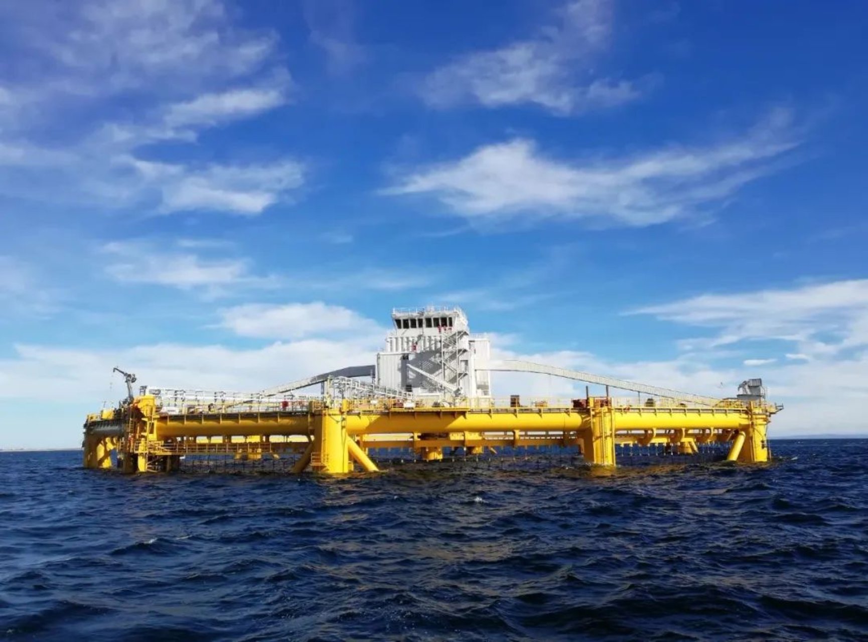 2017年6月3日,由中國船舶武昌造船為挪威薩爾瑪集團研制的世界首座大型半潛式智能漁場“海洋漁場1號”命名交運。這座世界規模最大、自動化程度最高的深海養殖裝備,集挪威先進養殖技術、現代化環保養殖理念和世界頂尖海工設計建造技術于一身,在全球首次實現了“智能養殖”的跨越性突破,填補了海工行業多項科研和施工空白,在全球漁業養殖領域具有里程碑意義。