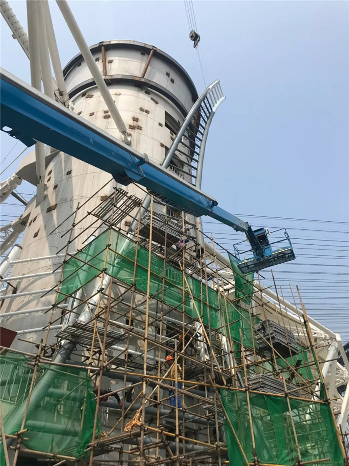 九層樓高的火炬塔,改造后約為46米。為了順利實現高空安裝、吊裝、焊接等作業的迅速、有效鋪開,吳剛將和楊華千方百計協調來58米的高空作業車和具備550噸起吊能力且伸展臂長達到78米的起重機車配合作業。