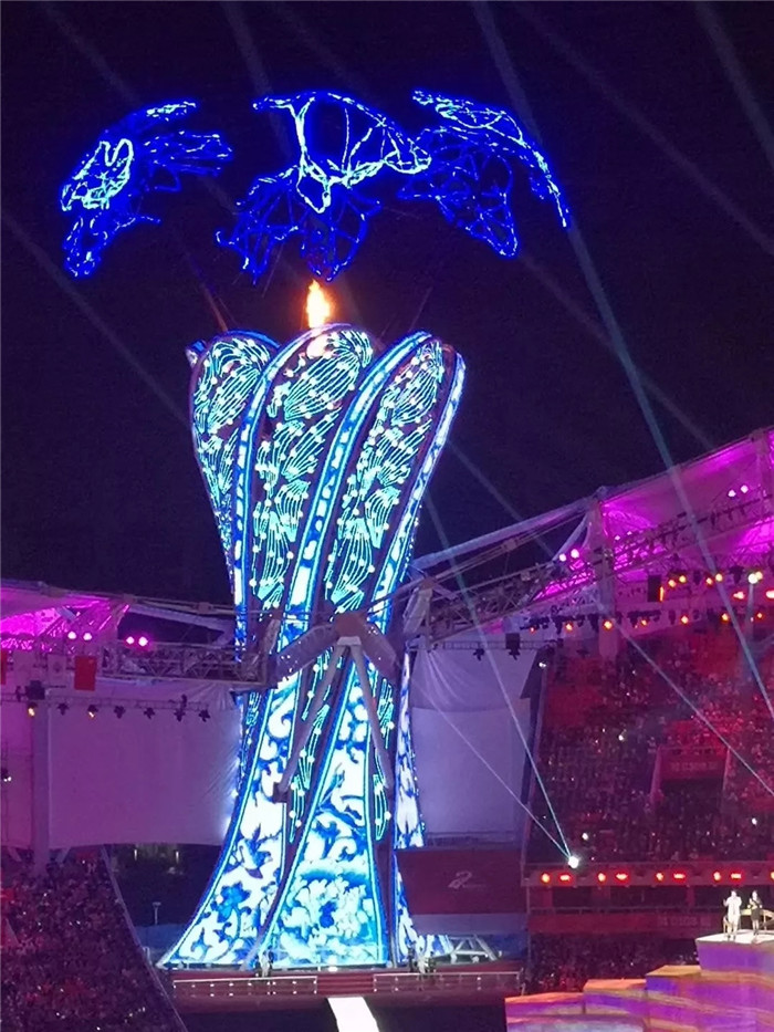 那炎炎夏日里、瑟瑟寒夜中的煎熬、辛酸、激動、喜悅的汗水、淚水,在那牽動人心的最后一秒,交織著化為世界軍運會火炬塔里燃燒著的熊熊火焰,正如革命先烈鮮血浸透的五星紅旗一般,永不褪色,永不熄滅!