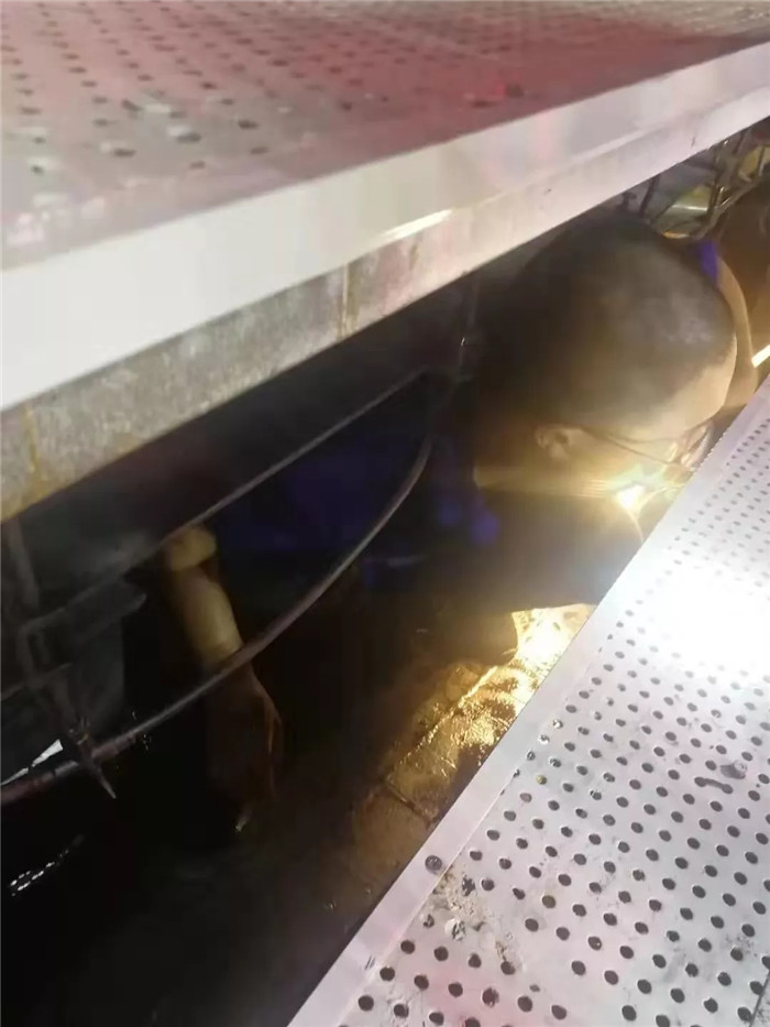 ▲水區下方施工結束后鉆出來一身汗水一身銹跡