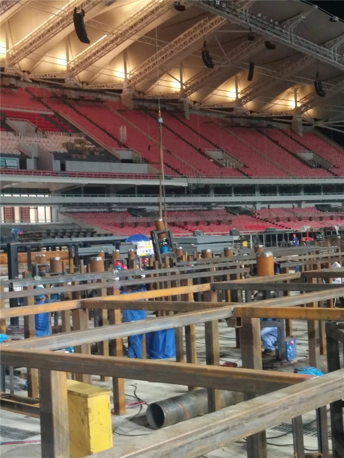 軍運會開幕式前夕,武船集團參與舞臺建造項目的全體員工又認認真真、仔仔細細地將整個舞臺每一條焊縫、每一刻螺絲、每臺設備、每處臺面,都進行了再一次的檢查。