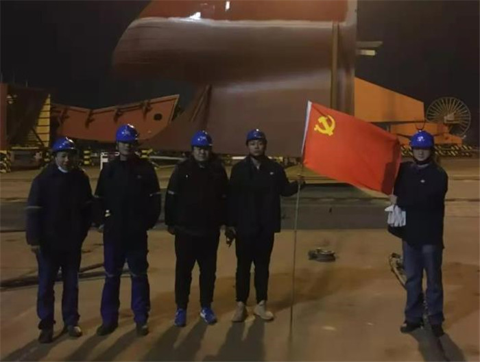 11月26日,中國船舶武船集團船舶總裝部支持作業區黨支部在生產現場開展特色支部主題黨日活動,突擊完成5000t臺灣海峽大型巡航救助船球鼻艏分段吊裝工作,標志著該產品主船體形成。