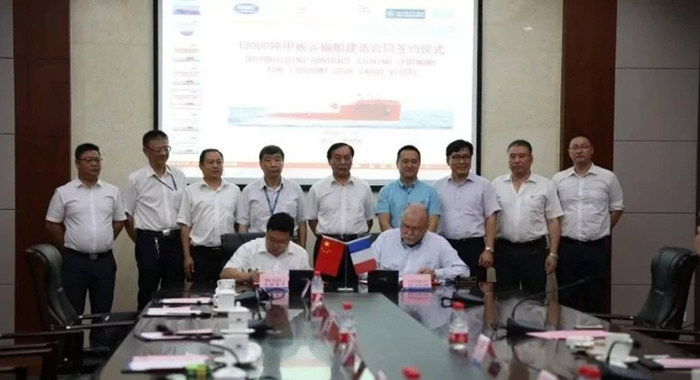 2018年7月25日,中船重工武船集團(tuán)海工院在現(xiàn)有4艘13000噸甲板運(yùn)輸船的訂單基礎(chǔ)上,與法國路易達(dá)孚集團(tuán)新簽署了4艘后續(xù)船的EPC建造合同。