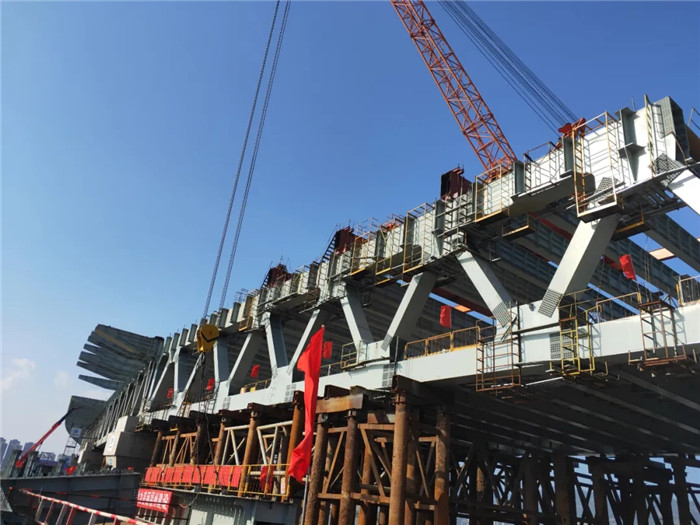 至此,全橋1.7萬余噸鋼桁梁桿件全部安裝完成,該工程鋼結(jié)構(gòu)部分實現(xiàn)全線貫通,為明年年底全橋建成通車奠定了基礎(chǔ)。