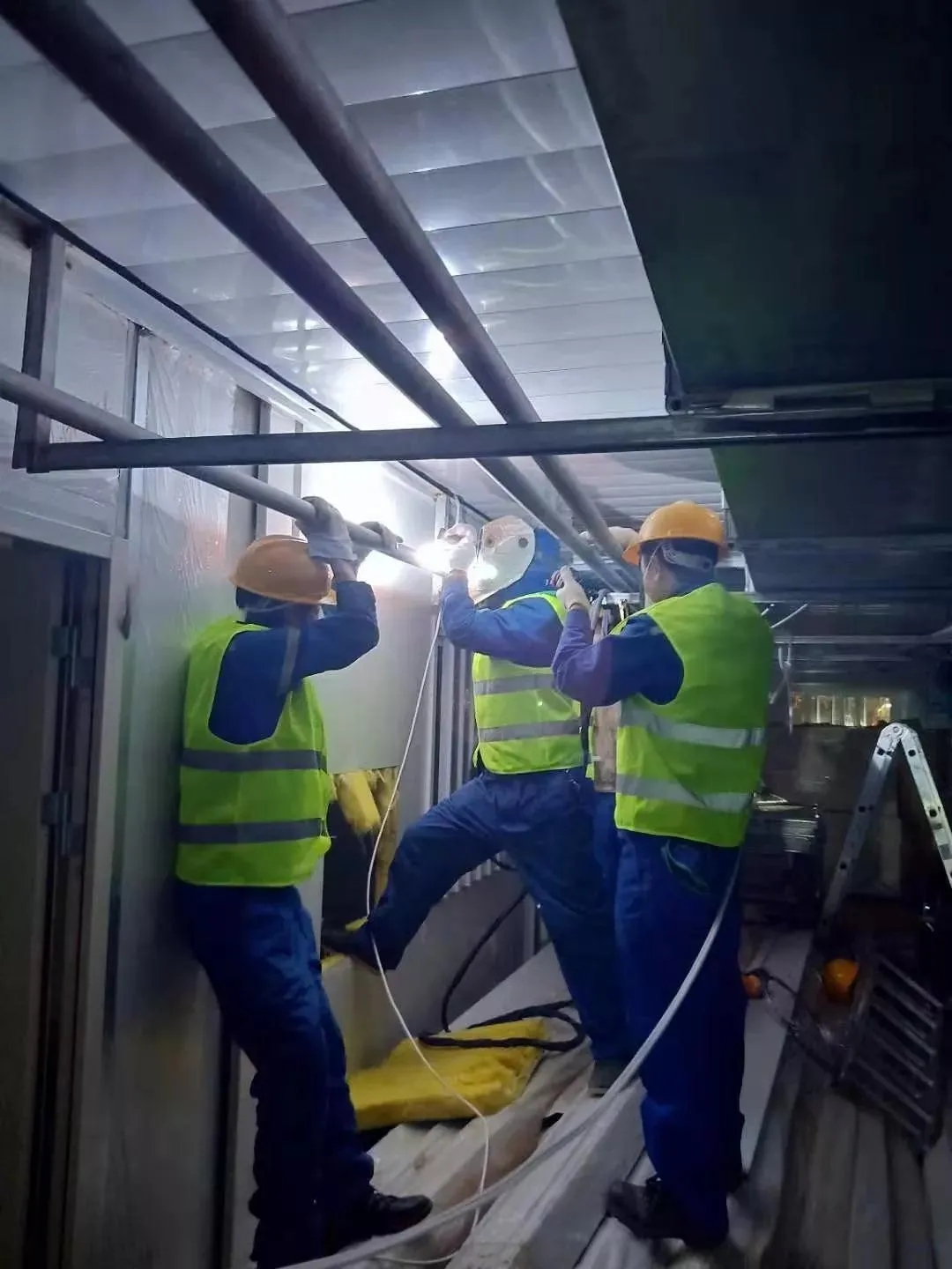緊接著,操起電焊工的老本行。一時間,氬弧焊耀眼的白光將施工區域的長廊照的通透!
