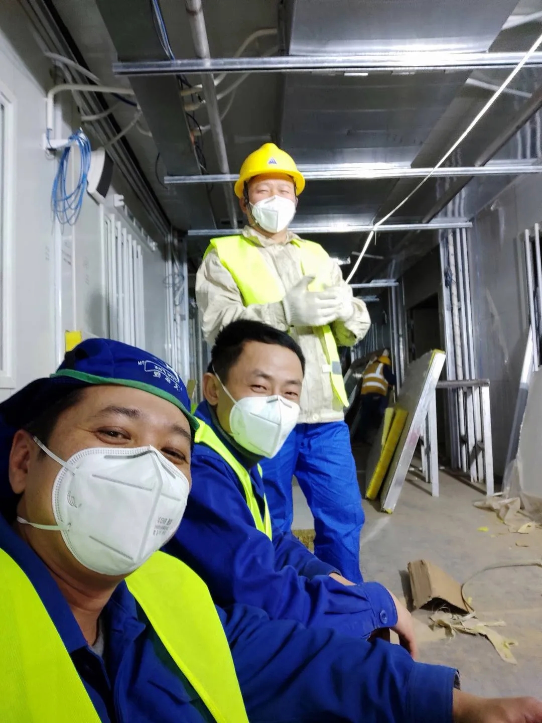 為了不耽擱一分一秒,饑腸轆轆的他們沒能顧上晚飯,第一時間找到防疫指揮部現場施工負責人進行對接,詳細了解材料設備領用、存放、施工技術要求等現場施工狀況。