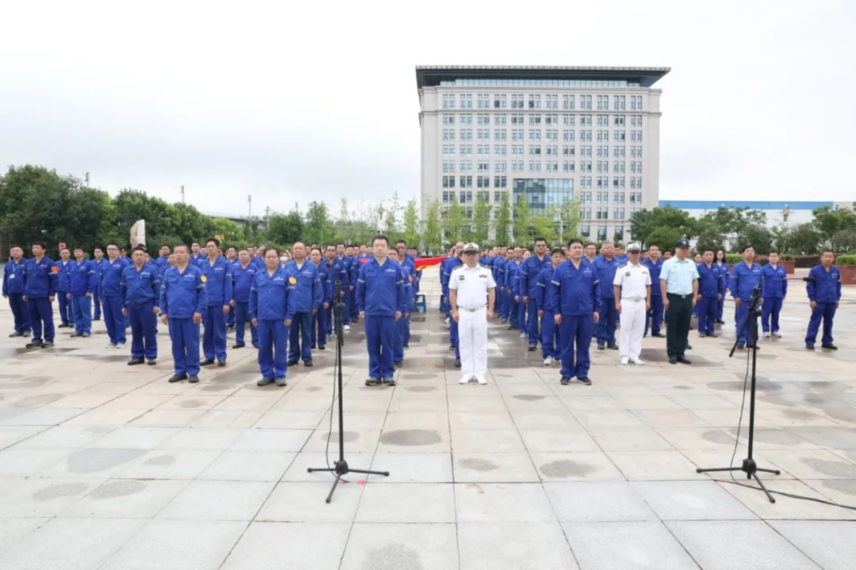 在公司偉人廣場舉行的升國旗儀式,公司領導、海裝駐武漢地區第一軍事代表室代表、各單位黨組織專兼職書記、黨員代表150余人參加。伴隨著莊嚴的國歌,五星紅旗、中國船舶集團司旗、武昌造船司旗冉冉升起,在場黨員干部們共同唱響國歌、行注目禮。