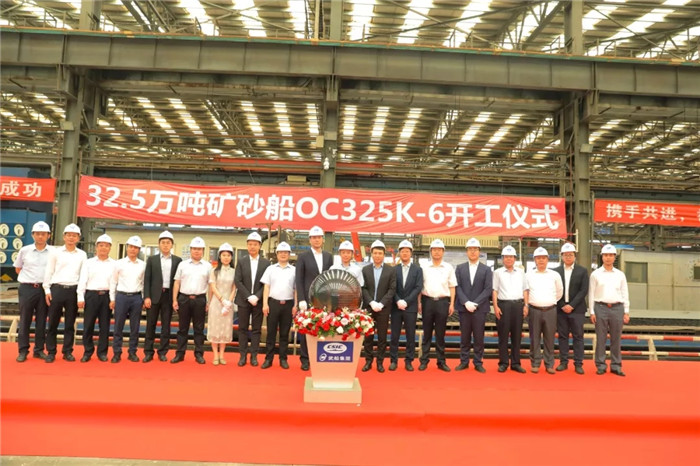 8月23日,武船集團北船重工舉行了為工銀金融租賃有限公司和招商局能源運輸股份有限公司建造的32.5萬噸礦砂船OC325K-6號船開工儀式。工銀金融租賃有限公司航運金融事業部副主管計飛先生、招商局能源運輸股份有限公司副總經理丁磊先生、工銀租賃航運金融事業部副主管賈浩、執行總經理郭芳萌、中船重工經濟運行部主任于逢平先生、武船集團黨委委員、北船重工黨委書記、董事長王國海和黨委副書記、總經理谷克超等一同出席儀式。