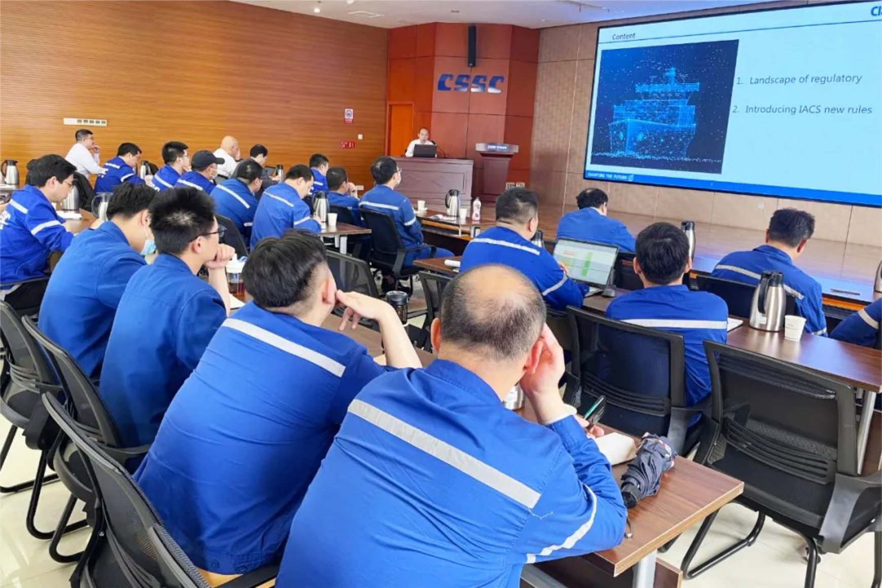 此次交流會由NK船級社審圖中心總經(jīng)理鄒宇帶隊,高級審圖工程師王曉宇、楊哲主講。NK船級社分別從脫硫塔排舷外管的破損及應(yīng)對措施、IACS UR E27檢驗(網(wǎng)絡(luò)安全)、LNG/LPG/甲醇/氨燃料和GHG減排技術(shù)、IMO近期熱門議題等多個方面,詳細(xì)介紹船廠如何應(yīng)對新生效的公約,并結(jié)合公司目前承制的1100TEU型集裝箱船設(shè)計及建造優(yōu)化,進(jìn)行典型案例分享和深入交流。