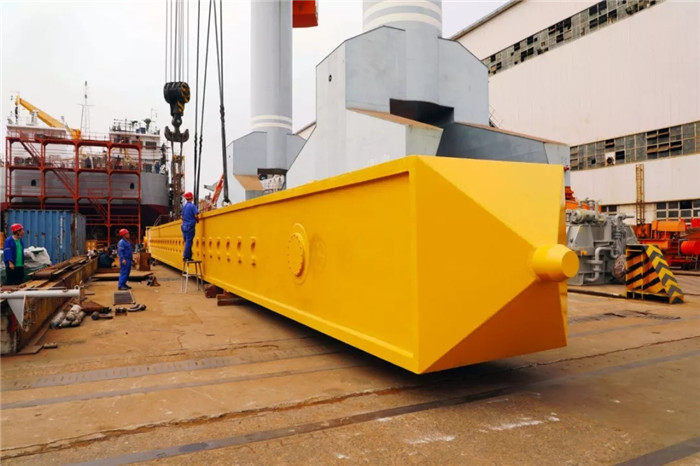 經過9天連續作業,9月15日,長江三峽壩區航道維護鏟斗挖泥船鋼樁定位系統3組巨型鋼樁部件船臺安裝任務按期順利完工,鋼樁定位系統制造安裝工程總量達到70%,為挖泥船按期下水提供了先決條件。