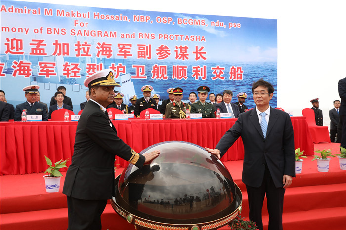 4月3日,中船重工武船集團為孟加拉國海軍建造的兩艘輕型護衛艦交付儀式在中船重工武船集團江蘇啟東基地隆重舉行。