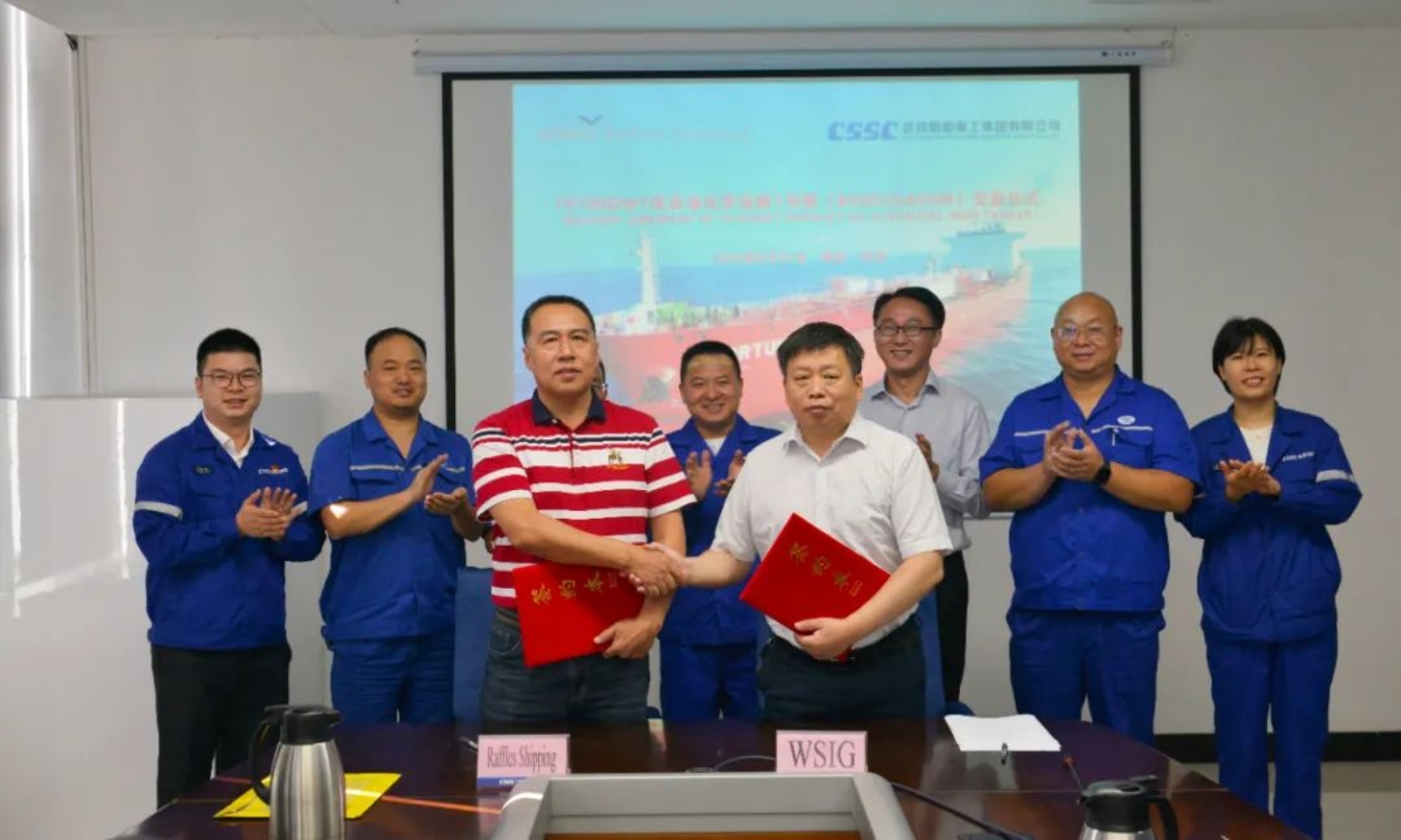 8月31日上午9時,中國船舶集團武昌造船為新加坡萊福士航運集團建造的 19700載重噸化學品船1號船 正式簽字交付!船東代表、上海富洋以及武昌造船的相關領導和嘉賓出席交船儀式。