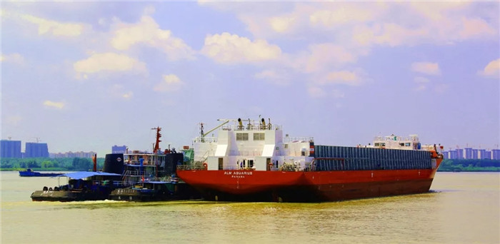 7月24日上午10點18分,由武船集團海工院自主設計、船舶公司承建的新13000噸甲板運輸船1號船緩緩駛離武船雙柳基地2碼頭,前往南通瑞泰基地進行后續(xù)的試航及交付工作。武船集團船舶公司相關領導參加了送船活動。