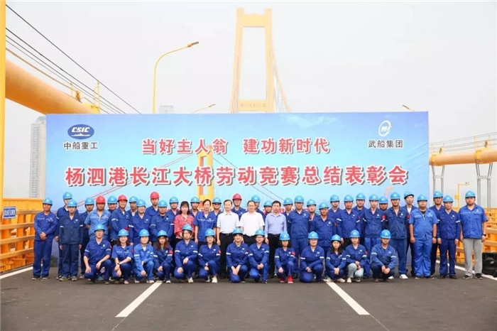 武船重工股份先后在楊泗港大橋上開展了“獻禮十九大 大戰(zhàn)120天”專項勞動競賽、聯(lián)合武漢市總工會開展了“當好主人翁 建功新時代”勞動競賽活動,先后創(chuàng)下了“單個項目單日發(fā)運5100噸”“36天完成全橋節(jié)段吊裝”等新紀錄。