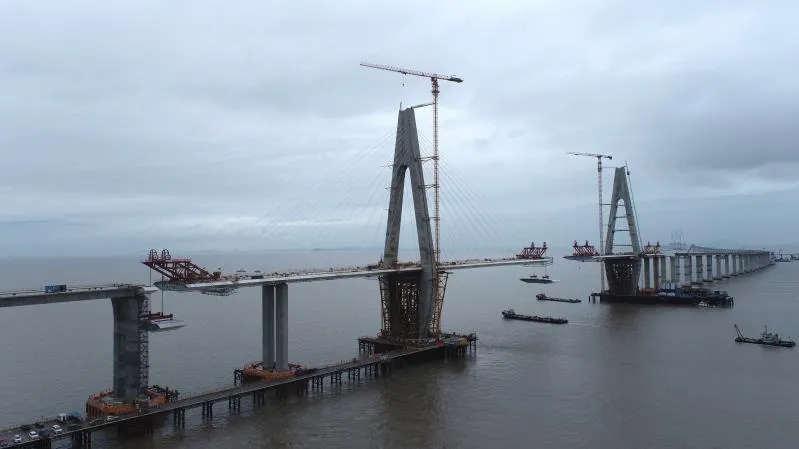 最后一個(gè)鋼箱梁節(jié)段發(fā)往橋位