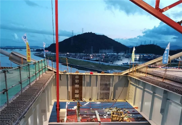 春節過后,項目受新冠肺炎疫情影響,工期有所滯后。由于珠海每年7-8月為臺風頻發季節,如不能按原計劃在6月底實現全橋合龍,將大大增加施工安全風險。在業主、總包單位的大力支持下,在武船重工股份的統籌安排和努力下,抽調非湖北籍的項目人員和施工人員返崗,在2月22日實現復工復產。復工以后,武船重工股份倒排工期,圍繞預期目標開展黨員示范工程項目和專項勞動競賽,優化資源配置和人員安排,在確保質量和安全的前提下搶抓工期,最終在臺風季來臨之前實現了全橋合龍。