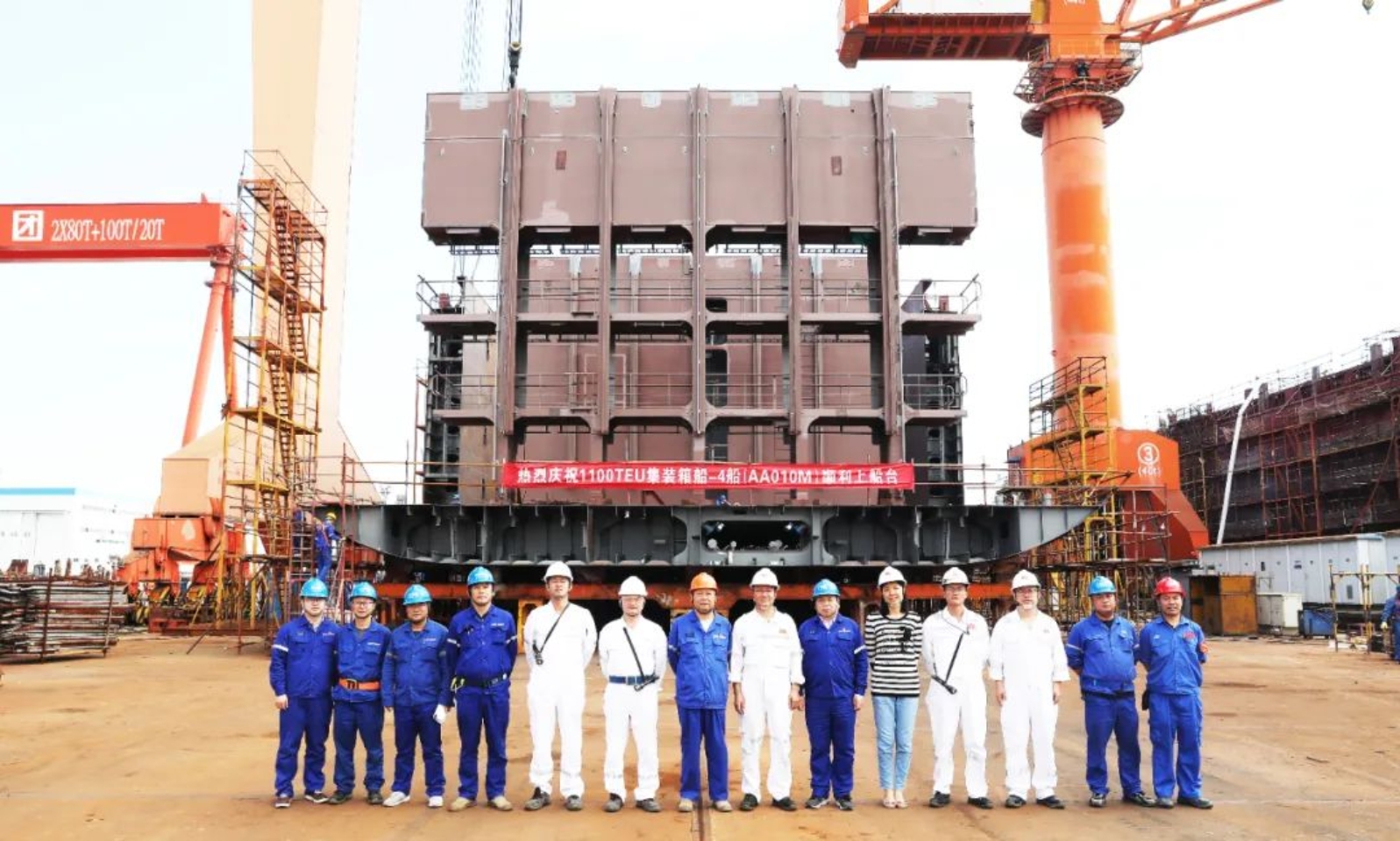 戰鼓響,催奮進!1100TEU集裝箱船4號船順利上船臺